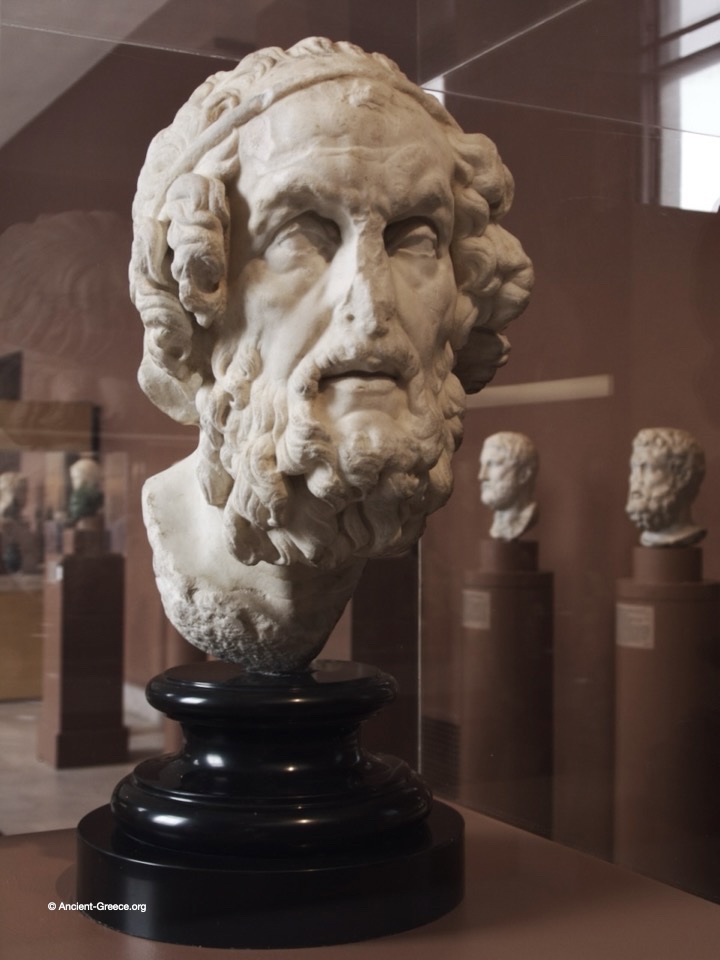This idealized portrait portrays Homer’s character through the poetic fillet (headband) signifying his prowess and deeply lidded eyes that denote his legendary blindness, a trait often associated with the spiritual insight of ancient seers. Likely originally part of a life-size seated statue within a civic or private library, this work serves as an enduring tribute to the man who served as the cultural and literary foundation of the Greek world.