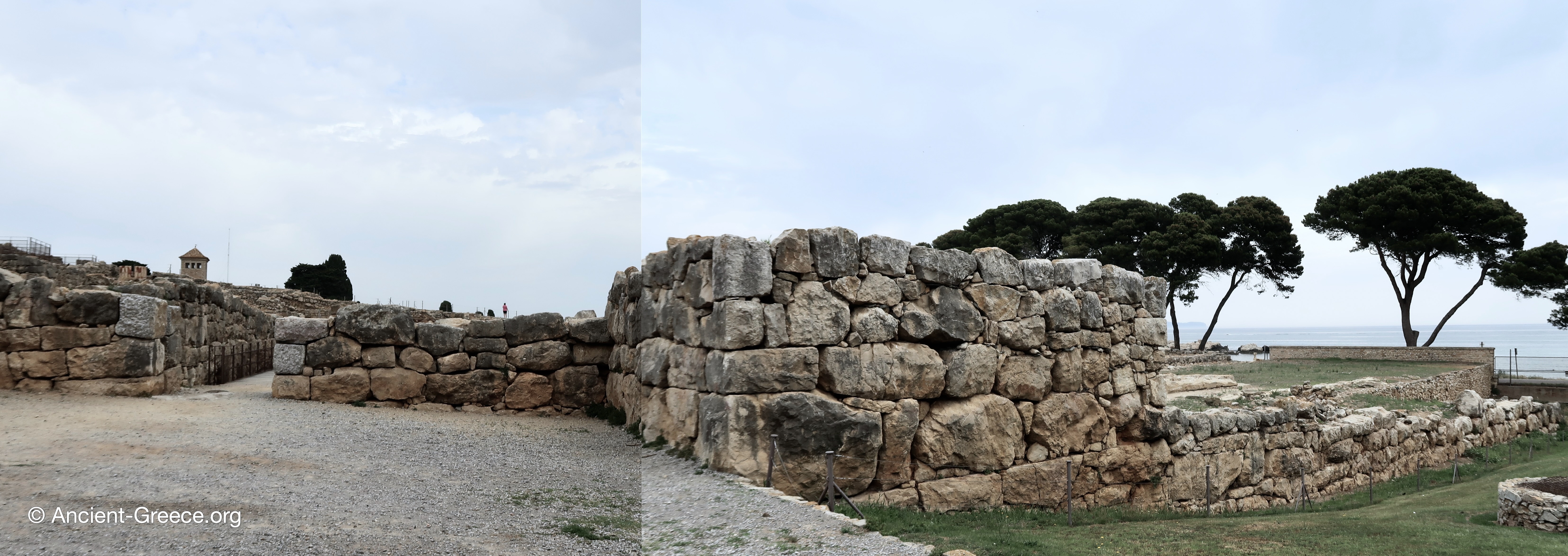 In the 3d century BCE, a proteichisma was built, and outer protective wall to reinforce the 4th century BCE wall, which was also partially dismantled at a later date. The walls that still stand were built in the mid 2nd century BCE and have two towers that protect the main gate into the city from the south as well as a third tower at the southwest corner.